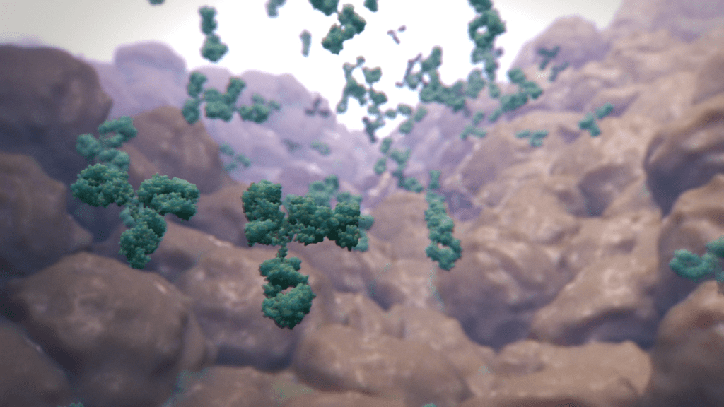 The production phase presented an interesting technical challenge. I imported real-world protein structures from the Protein Data Bank (https://www.rcsb.org/) into Cinema 4D, which gave the animation scientific accuracy. However, maintaining high-fidelity molecular models while keeping the scene performant required some problem-solving. I used Cinema 4D’s Volume Builder and Volume Mesher to optimize the geometry without sacrificing visual detail. I created custom materials and lighting setups in Redshift to achieve the high-key cinematic look MSC Pharma envisioned, and applied core animation principles to ensure the drug’s blocking mechanism was crystal clear.